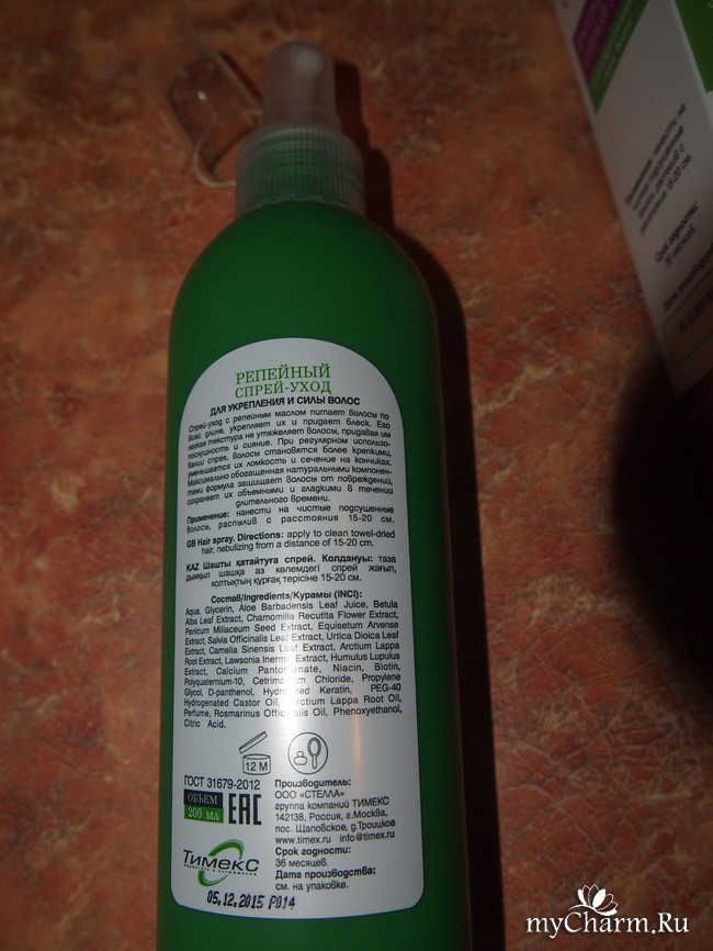 Сам флакон спрея зеленого цвета, очень красиво выглядит, его можно полюбить только за одно оформление. А помните, как мы раньше, да, может и сейчас кто так делает, покупали в аптеке репейное масло и наносили его на волосы, долго держали под колпаком и потом смывали? Сколько же было мороки с этим мытьем, казалось, вместе с маслом смывался не только сам уход, но и все-все из волос. Нет, это время я повторять не хочу, тем более от таких душераздирательных сцен толку было мало — волосы выпадали все равно.