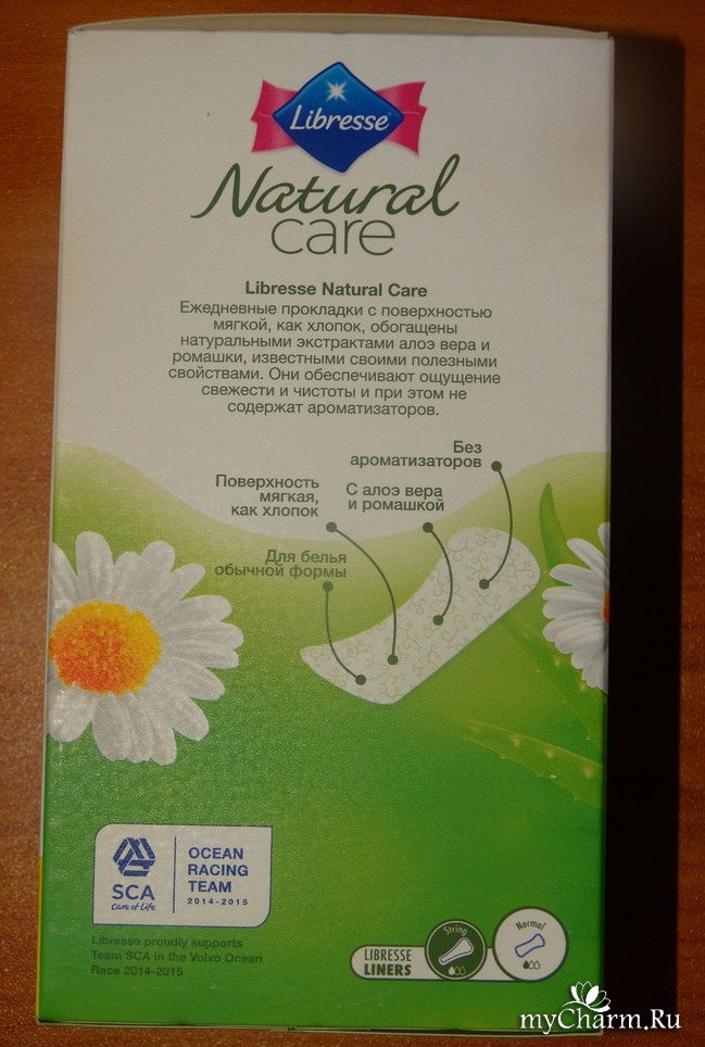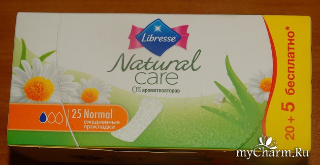Речь пойдёт о прокладках ежедневных Natural care Normal с экстрактом ромашки и алоэ вера. Фирма - производитель Libresse.