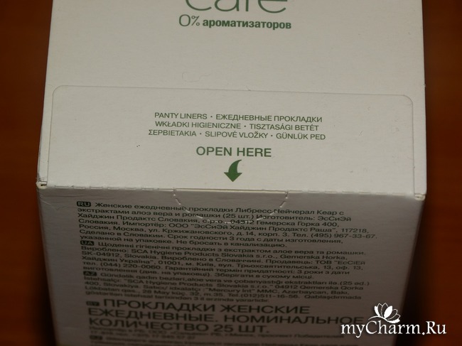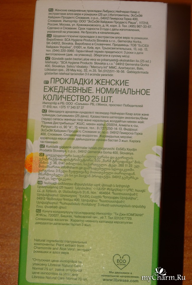 Если немного повертеть упаковку, рассмотрев её со всех сторон, то можно увидеть и информацию о пользе экстрактов ромашки и алоэ вера, и о том, из каких слоев состоит прокладка.