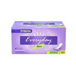 Обозначено наименование продукта на русском языке: прокладки женские ежедневные, количество в упаковке - 25 штук.