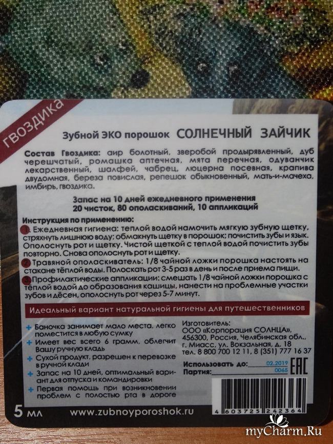 Поэтому я смело рекомендую Солнечный зайчик Зубной ЭКО порошок гвоздика от бренда "Фабрика Трав".