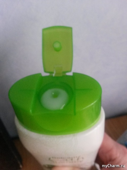 Средство гелеобразное, молочного цвета, аромат очень приятный, легкий, с ноткой ванили и ореха.