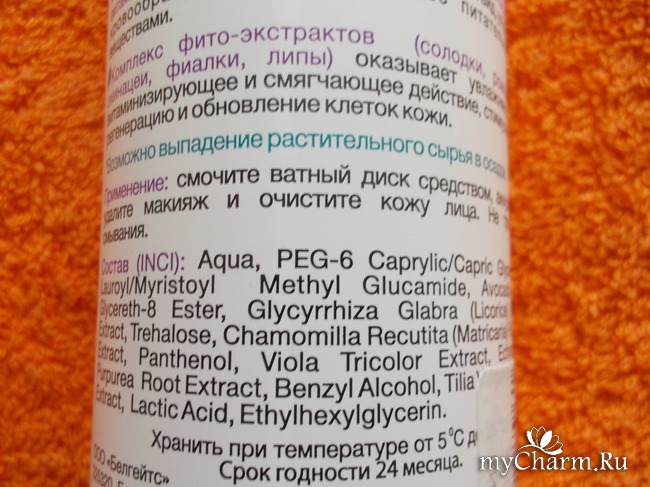 Само очищающее средство прозрачное. У тонизирующей воды может возникать естественный осадок растительного сырья, но в моей бутылке пока его не видно, потому что его нет. Аромат ненавязчивый и не токсичный. Производитель ООО "Белгейтс", Беларусь.