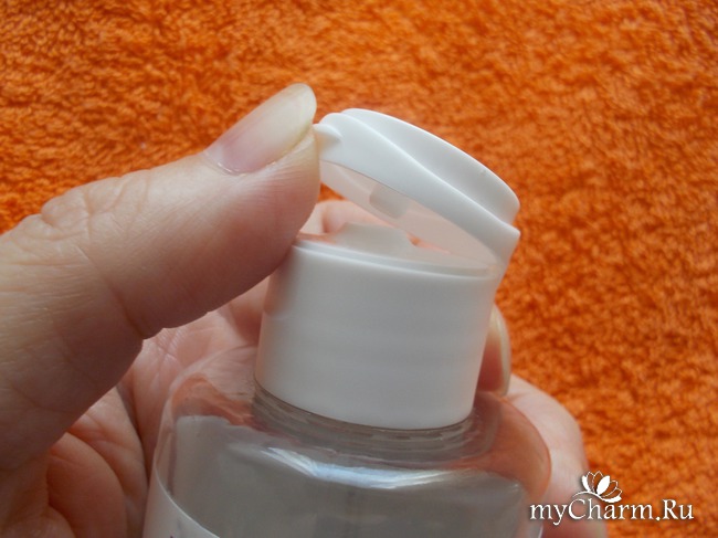 Находится мицеллярная вода в прозрачной пластиковой бутылочке объемом двести миллилитров. Крышка удобная откидная. Есть место для подушечки пальца, чтобы упереться, а не соскальзывать.