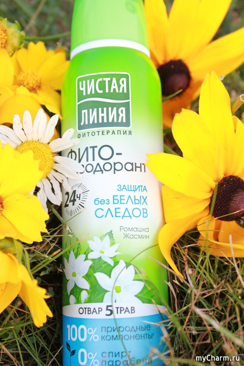 В один из выходных дней всей семьей отправились за покупками в гипермаркет, где отличный выбор косметических средств широкого потребления. И хотя я стараюсь избегать спонтанных покупок косметики, но тут не устояла. Отправив мужа с ребенком выбирать продукты, я решила заглянуть в тот самый вожделенный отдел. И сразу в глаза бросился "Фитодезодорант ромашка и жасмин - защита без белых следов" бренда "Чистая линия". Захотелось его попробовать, ведь, во-первых, на него была хорошая скидка, а во-вторых, ну как тут не соблазниться на слово "фито".