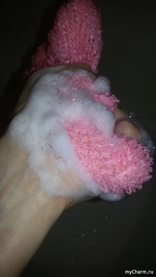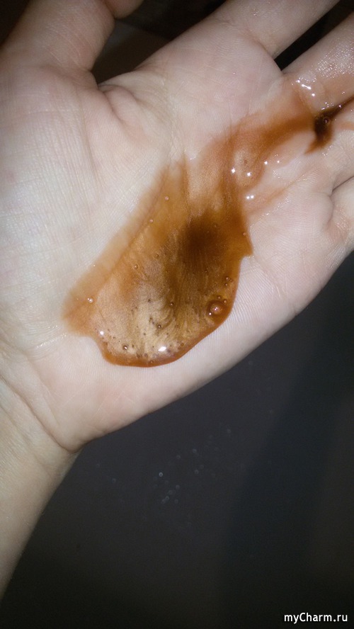 Сначала меня немного обеспокоил тот факт, что насыщенный темно-коричневый цвет геля прочно впитался в мою нежно-розовую мочалку и вряд ли теперь покинет ее пределы. Выглядело это не особо эстетично. Но после того, как я хорошенько вспенила средство, шоколадный цвет сменился на светло-бежевый оттенок пены – добротной, густой. Гель хорошо смывается, не оставляя ощущения липкости.