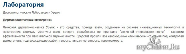 Гипоаллергенность - вот, что на первом месте у этого бренда. Любители натуральной косметики могут не понять. Да и в том числе и я считаю, что для меня "зеленые" средства лучше. Но все мы знаем, что если у человека есть склонность а аллергии, на натуральные компоненты стоит смотреть с осторожностью. Например, мёд, травы, эфирные масла... Это как раз компоненты из "зоны риска". А потому Урьяж подбирает хоть и какие-то синтетические компоненты, но с осторожностью и максимальной гипиаллергенностью. Да и, я думаю, вы сами понимаете, что качество используемого сырья тоже везде разное. Согласитесь, минеральное масло в аптечной дорогой косметике - совсем не то масло, что будет в гигиеничке неизвестного производителя за 30 рублей.