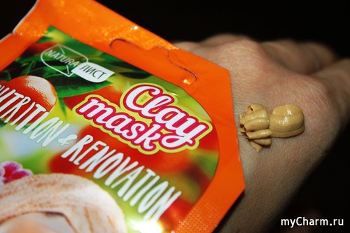 На обратной стороне пухленького глянцевого пакетика можно ознакомиться с составом. Основой его является оранжевая глина, которая отлично очищает кожу, нормализует работу сальных желез, сужает поры и наполняет верхние слои эпидермиса минералами и микроэлементами. Экстракт (масло) апельсина снимает усталость, насыщает кожу витаминами и придает сияние и здоровый цвет. Экстракт (масло) герани снимает воспаления и раздражения, успокаивает, придает гладкость и упругость. В этом же направлении действует и экстракт алоэ. Этот компонент справляется с высыпаниями и активными воспалительными процессами, а также предупреждает их и интенсивно увлажняет кожу. Экстракт шалфея питает, придает свежий и подтянутый вид. Вот такая фруктово-цветочная композиция! Сочетание глины и эфирных масел может быть лучшим подарком коже, которая требует восстановления и ухода.