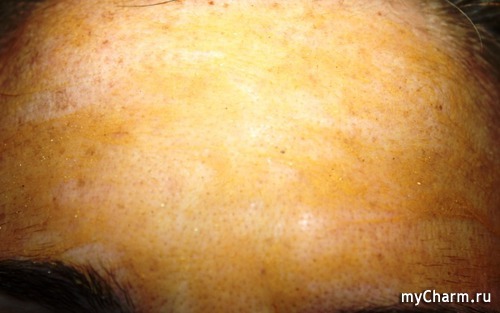 Она кремово-оранжевого цвета и вкусно пахнет. Такой чудесный аромат, сочетающий нотки сладкого цитруса и нежных цветов. Легко, ненавязчиво и приятно. Схема так и гласит «вдыхайте глубже», чтобы ощутить эффект ароматерапии. Состав мягкий и податливый, он как крем одним движением растирается по всей поверхности лица. Далее, следует отдыхать порядка 10-12 минут. Именно отдыхать, т. е. расслабить мышцы лица и забыться. Не рекомендуется смеяться, разговаривать и вообще как-то проявлять мимику на лице. Первые минуты ощущается покалывание и пощипывание, причем вполне значительное, но терпимое. Затем эти ощущения стихаю и сходят на нет. Маска постепенно подсыхает и превращается в такую тонкую корочку, которая в случае малейшего движения лицевых мышц дает трещинки.