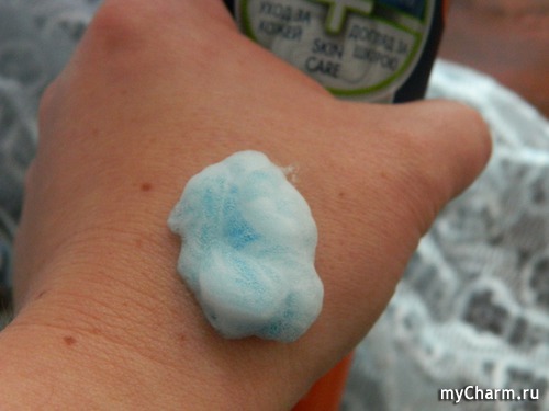 В средстве содержится ментол, поэтому получившаяся пенка слегка охлаждает кожу, но не щиплет её. Как говорит муж, ощущения «просто супер»!