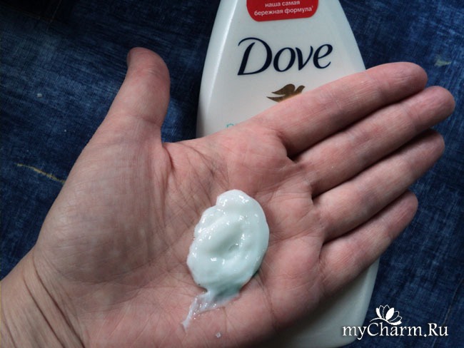 Я понимаю, что у Dove это его фишка. А именно: мыло, которое на четверть состоит из крема, или гель наполовину из увлажняющего средства. Но не смогла привыкнуть к такому продукту. Реально – это не средство для душа или ванны, а средство для увлажнения кожи в душе.Потому что это крем. А попробуйте нанести на влажное тело увлажняющий лосьон, а затем смыть его. Полноценной очищающей процедуры не получится. Это будет другая процедура: увлажняющая, смягчающая, но не очищающая. Это мое мнение.