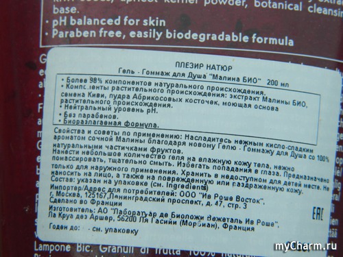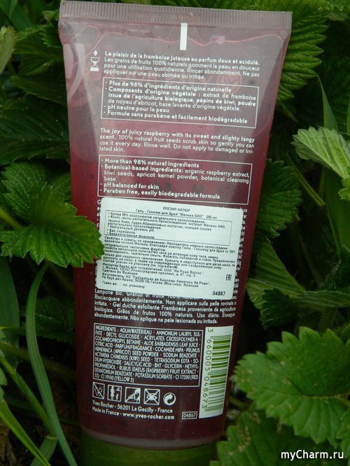Представляю вам Гель-гоммаж для душа «Малина БИО» от Ив Роше, который щедрый производитель прислал мне в подарок на годовщину моего первого заказа (представляете, он об этом событии помнил, а я - нет!).