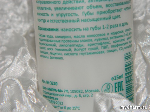 Напоследок. Что касается объёма: 15 миллилитров хватит надолго, поскольку тратится средство по капле. Что касается цены: на сайте mirra.ru Гель для коррекции объёма и формы губ можно приобрести за 357 рублей.