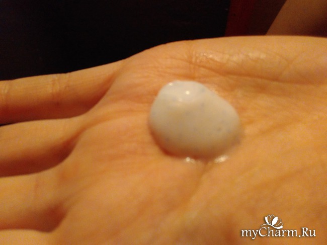 Сам гель-скраб, как и обещали, содержит мелкие частички синего цвета. Что они представляют на самом деле, я не знаю. Аромат геля на любителя. Многим, конечно, нравятся нежные ароматы, но запах данного средства мне кажется слишком химозным.