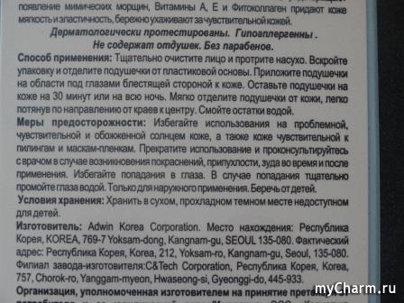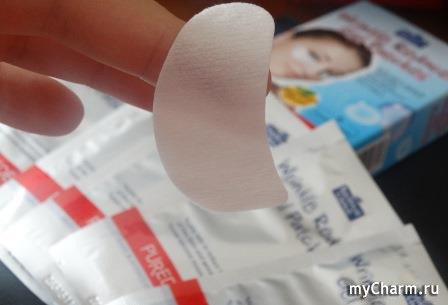Подушечки приложить к коже под глазами блестящей стороной, оставить на 30 минут, можно и на всю ночь. Затем отделить их, потянув от краев к центру.
