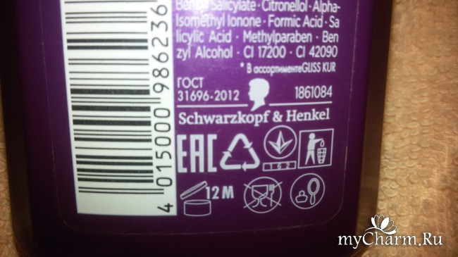 Пениться средство великолепно, как, впрочем, и все шампуни Глисс Кур. Достаточно выдавить на ладонь «кружок» величиной с монету. Но и смывается шампунь легко, без длительных ополаскиваний.