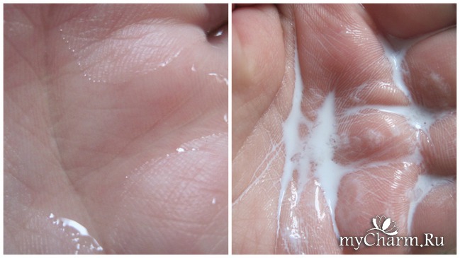 Почему масло называют гидрофильным? Дело в том, что при контакте с водой оно превращается в… молочко. Глядя на фотографии до и после использования воды трудно поверить, что это один и тот же косметический продукт.