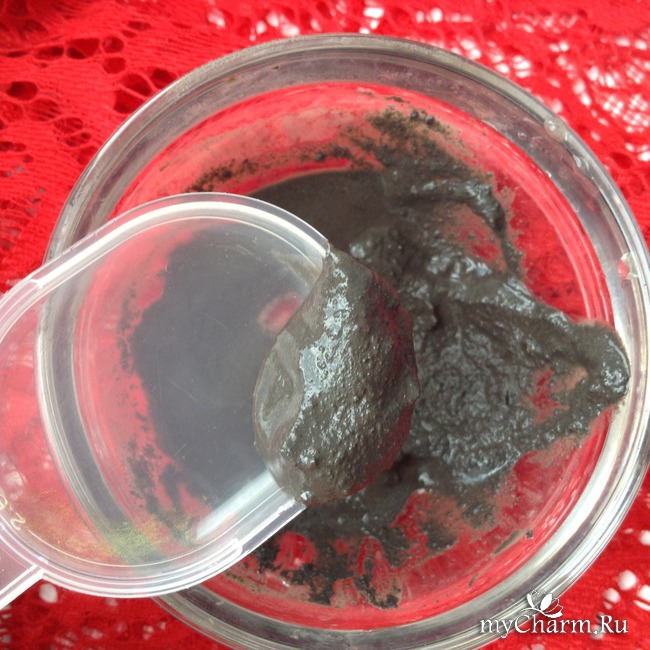 В чудо-коробочке содержится два пакетика с чудо-глиной по 50 гр. Глина-порошок цвета грязи. Один пакетик я сразу пересыпала в баночку с крышкой. Мне всегда так удобно разводить маску.