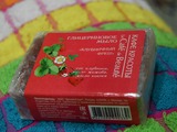 И вот мне в руки попало (в качестве подарка) глицериновое мыло "Клубничный фреш" от Кафе Красоты. Не помню, чтоб до этого пользовалась глицериновыми мылами. И в тот момент как раз заканчивался на полочке предыдущий брусочек обычного мыла, так что выбор следующего был очевиден.