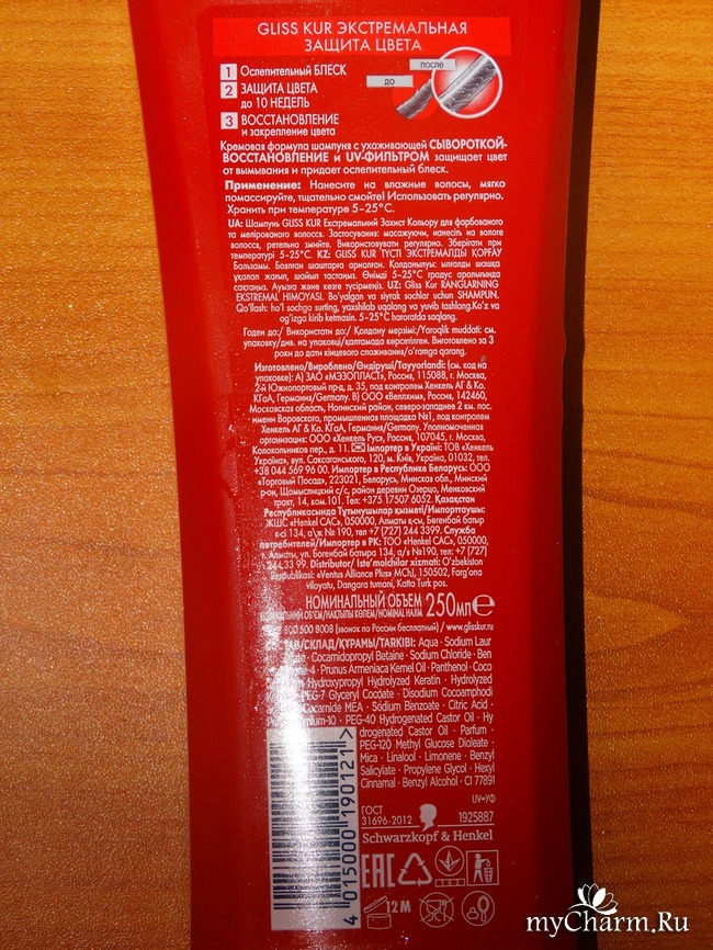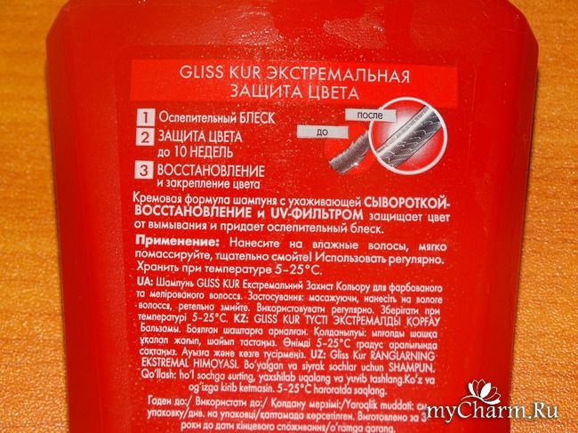 Итак, в центре повествования Экстремальная Защита Цвета Шампунь от бренда Gliss Kur.