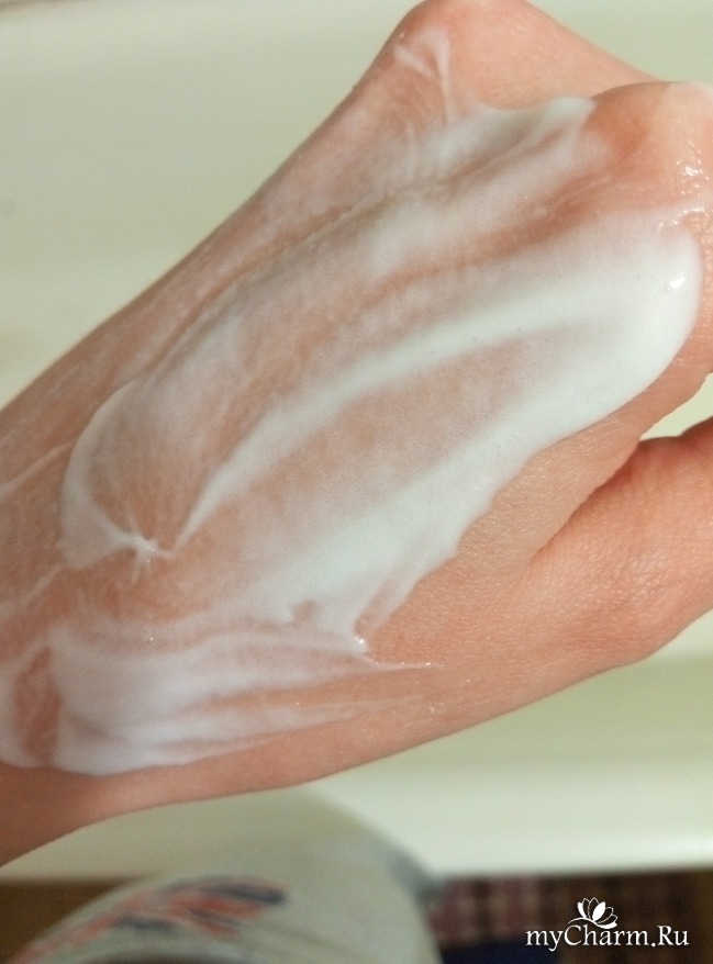 Консистенция. Цвет скраба-белый с минеральными микрогранулами. Микрогранулы не видно (напоминают не то песок не то соду по ощущениям), их обнаруживаешь только после нанесения на кожу. Консистенция кремообразная.