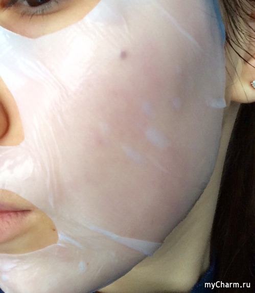 Затем, как мы знаем, с маской на лице необходимо полежать. Конечно, в большинстве случаев лично для меня это роскошь :) Да и вообще, просто так лежать я не могу, поэтому беру планшет и как раз пишу отзыв на эту маску. Вот вам и приятное с полезным. ;) Производитель рекомендует подержать маску на лице от 20 до 40 минут. Я, конечно же, оставляю на 40, да и больше полежать, думаю, тоже можно. Особенностью гидрогелевых масок является то, что этот самый гель способен растворяться под воздействием температуры тела. Таким образом обеспечивается более длительный эффект от применения, по сравнению с любой другой маской для лица. И действительно, постепенно маска на лице становится тоньше и мягче, она как будто сливается с кожей, довольно плотно прилегая к лицу, при этом не спадая и не съезжая.