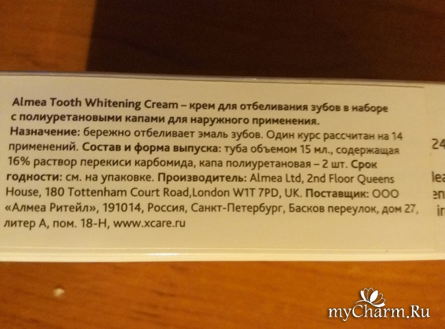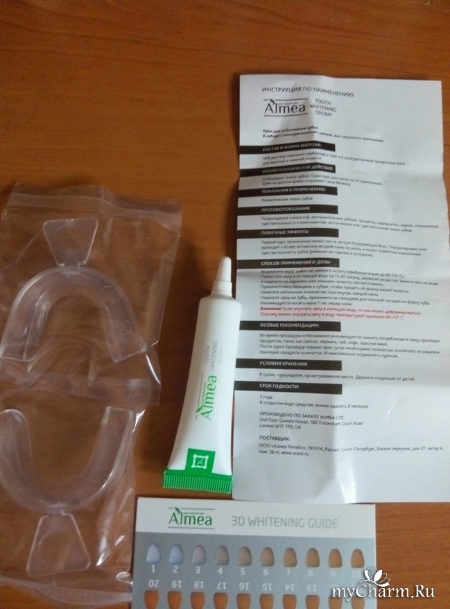 Но вот момент настал и 3 недели назад, я держала в руках заветную коробочку Almea Tooth Whitening Cream - крем для отбеливания зубов в наборе с полиуретановыми капами.