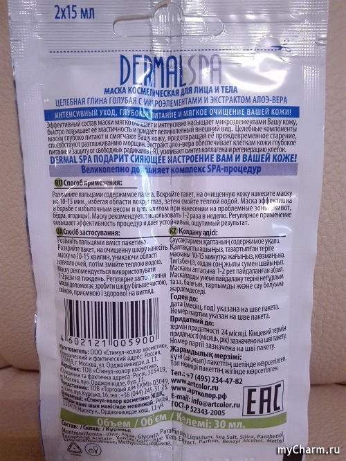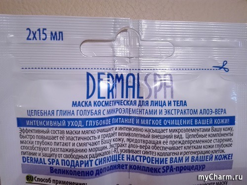 Следующим моим тестирующим продуктом стала Маска косметическая для лица и зоны декольте Dermal Spa. Эту маску можно использовать не только для лица, но и для тела.