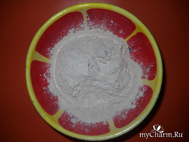 Сначала высыпаем в емкость порошок, окрашенный в беловато-сероватые оттенки.