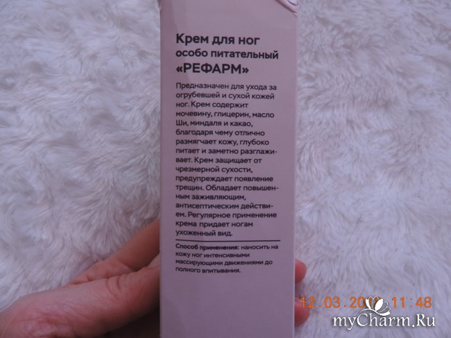 У меня осталось последнее средство, которое я так же получила на тестирование, о нем я вам сегодня и поведаю. Встречаем, Крем для ног особо питательный "РЕФАРМ".