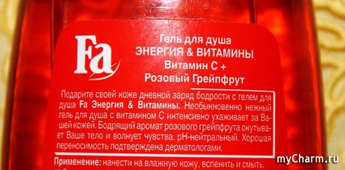 Вообще, дизайн гелей Fa очень привлекательный. Буквально недавно я рассказывала о другом аромате ( вот тут https://www.mycharm.ru/kosmetika/obzory/yarkij-i-dinamichnyj-zhasmin-ot-fa/). Прошло совсем немного времени, а я уже с новой покупкой. Видимо, дизайнеры хорошо постарались и угодили женскому вкусу. Изящный вытянутый флакон с ярким наполнением и двухцветной крышкой может стать прекрасным подарком знакомым и друзьям. А может просто развеять хандру и тоску любимой хозяйки.
