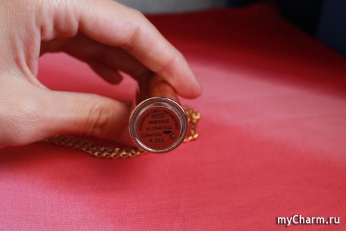 А через несколько месяцев я стала обладателем желанной помады, при этом купив ее по очень соблазнительной цене, процентов на сорок дешевле обычной стоимости, все в том же интернет-магазине.Производитель заверяет, что Grand Rouge - это идеальное сочетание насыщенного цвета и отличного ухода. Формула, обогащенная ценным и редким маслом камелии, разглаживает и восстанавливает кожу губ. Стоит упомянуть и о ее хорошей стойкости - на сайте указано, что роскошный цвет сохраняется до шести часов.