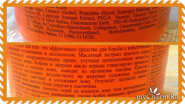 Масляный экстракт красного перца – именно он оказывает горячительный и жиросжигающий эффекты. Ведь для того, чтобы избавиться от ненавистного целлюлита и выровнять кожу необходимо ускорить микроциркуляцию крови. Именно этот компонент и отвечает за эти действия. Также красный перец усиливает действие других составляющих, которые сжигают жир.