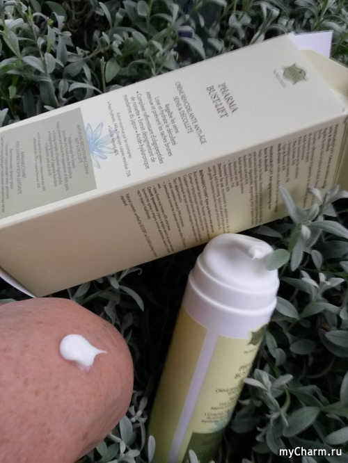 Мелкие морщинки разглаживаются, крем как бы заполняет эти наработки времени. Кожа на ощупь очень мягкая и гладкая. Крем отлично выравнивает цвет кожи, как зеркальная поверхность, очень бархатистая и свежая.