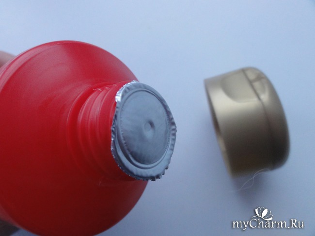 Туба с шампунем довольно увесистая – 250 мл, изготовленная из мягкого пластика красного цвета. Верх и низ тубы украшен выбитыми изображениями трав и грибочков. Для меня такие тубы для шампуней удобнее всего, потому что ставятся на плоскую крышечку и в конце использования остатки средства не нужно «добывать», тряся флакон или доливая туда воды. Флакон мягкий, отверстие небольшое и доза шампуня оказывается на ладони, стоит лишь совсем слегка сжать стенки тубы в руках.
