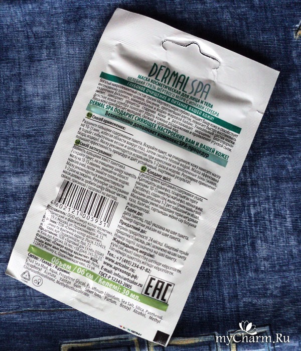 1) Маска многозадачная. То есть, конечно, хорошую маску можно с одинаковым успехом нанести и на лицо, и на тело. Это я понимаю. Но здесь слишком разные результаты заявлены в качестве возможных. То есть, для лица обещается разглаживающий и омолаживающий эффект. А для тела – борьба с избыточным весом и целлюлитом. То есть, слишком уж разные задачи. Несомненно, грязь Мертвого моря – хорошая вещь и может использоваться практически во всех бьюти-процедурах, но в данном пакетике – не просто грязь, а сформулированный состав с грязью. Странно как-то средство от целлюлита мазать на лицо и наоборот. В общем, я была в раздумьях, как именно лучше всего использовать этот состав.