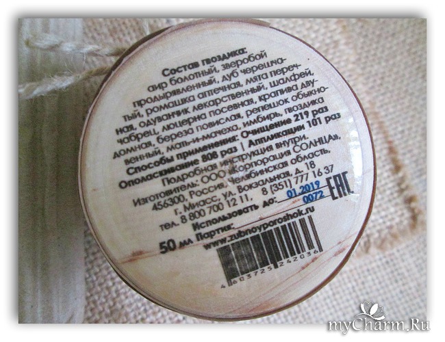 Сравнив составы всех зубных порошков этого производителя, я поняла, что они идентичны, состоят из 14 трав и различаются лишь одним дополнительным компонентом. У моего порошка - это гвоздика. Она и задает тон аромату и вкусу.