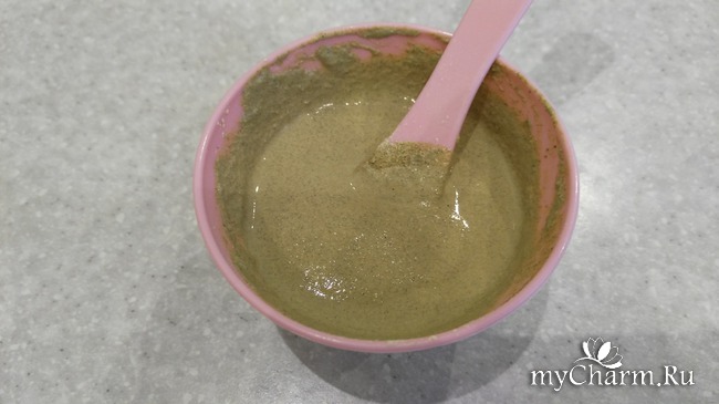 Приобретает равномерную консистенцию при добавлении воды, поэтому данную маску легко распределять на коже головы.