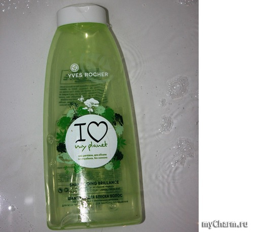 Все «убранство» шампуня четко и ярко заявляет об экологичности и сохранении нашего драгоценного «земного шарика». Светло-зеленый полупрозрачный матовый флакон украшен изображением шара с зелеными насаждениями. В центре шара гордо значится: I love my planet. От себя скажу, что каждый раз, когда беру в руки шампунь, чувствую свою принадлежность к «зеленым».