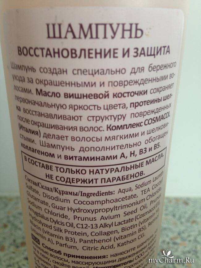 Витамины A, H, B3, B5 дополняют богатый качественный состав шампуня.
