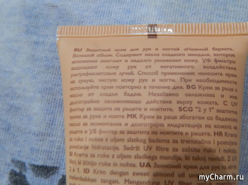 Крем называется "Нежный бархат" думаю, потому, что после нанесения крема кожа рук становится гладкой и бархатистой.