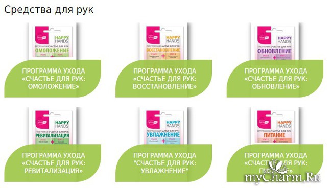 Сегодня поговорим об одном из направлений бренда - это уходовые программы для наших ручек, серия под названием "счастье для рук". Программы создавались, учитывая все пожелания и предпочтения дам, которые сталкиваются с неблагоприятными условиями на работе и не только. В ассортимент вошли шесть различных видов программ: увлажнение, питание, омоложение, восстановление, обновление и ревитализация. Как мы видим, ассортимент действительно прекрасен и разнообразен. Каждым ручкам обязательно найдется свой "товарищ".