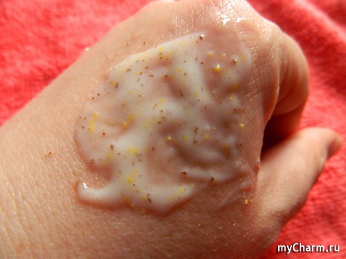 Попробовала нанести гель-скраб непосредственно на тело и растереть его руками. Ощущения? Так себе. Скользит что-то по коже, абразивные частицы нисколько не работают. Честно говоря, если воспользоваться скрабом для лица, и то будет больше толка. Хотя когда рассматриваешь скраб, видно, что включения довольно крупные. Почему они не действуют, непонятно.