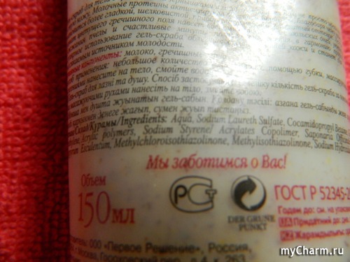 Но я для себя всё-таки нашла один плюс: запах от геля-скраба смывается быстро, после душа или бани совсем не ощущается, и это хорошо (не люблю запах прокисшего молока).