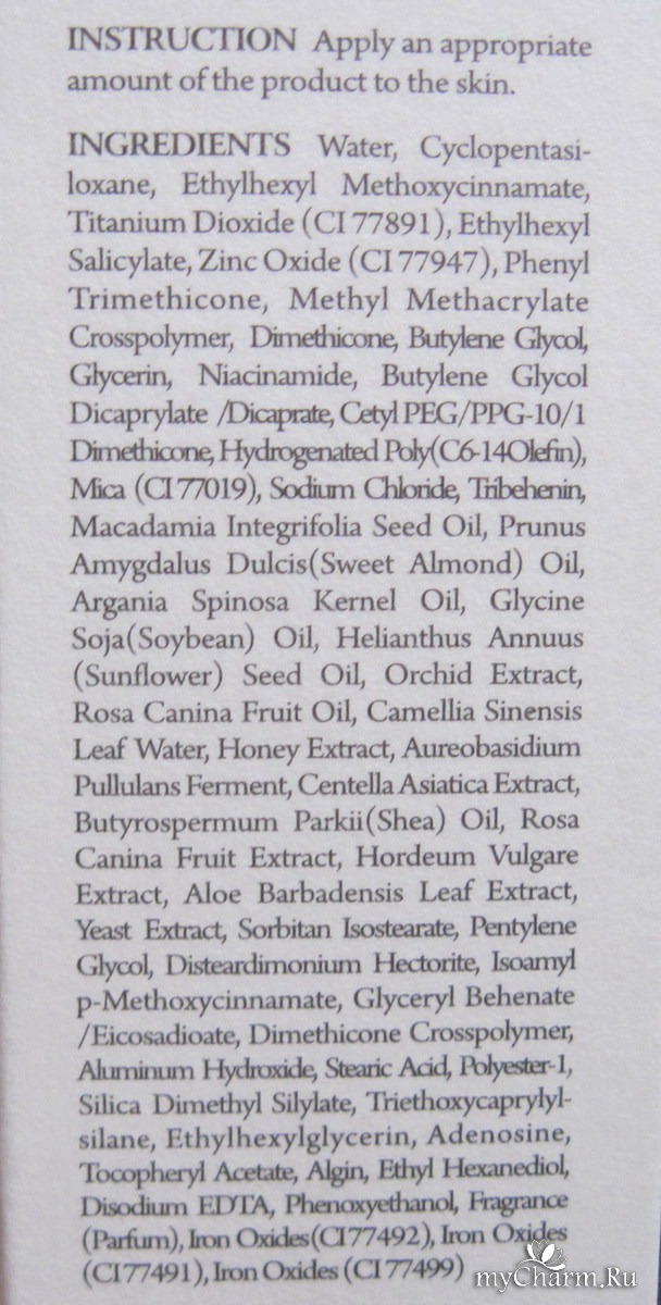 Очень важно сказать про защиту от солнца - UV лучей (SPF50+, PA+++). Это очень кстати для меня. Других кремов уже и не беру – только с защитой от излучения.