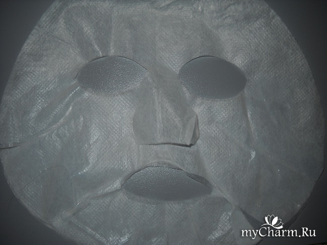 Внутри упаковки меня ожидала щедро смоченная пользительным составом гидрогелевая масочка. Кстати, объем одной маски составляет 30 мл. И маска очень приятно пахнет – правда, запах еле уловимый, но он чудесный!