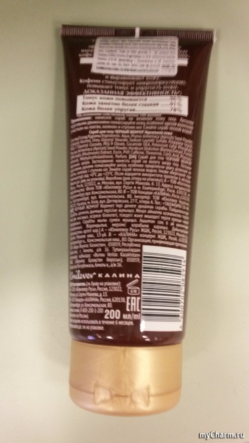 Скраб упакован в мягкий пластиковый тюбик 200 мл, с крышечкой типа flipp-off, что очень удобно, когда руки мокрые. Упаковка очень красочная, благородный шоколадный цвет с золотыми вкраплениями. Тюбик сразу привлекает к себе внимание.
