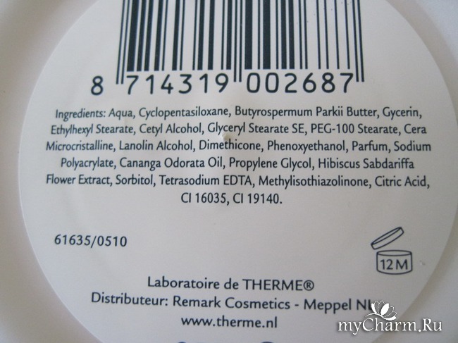 Объем. Как я уже написала, Therme поражает большим объемом. Это увесистая банка весом 340 граммов. На месте менеджеров Therme я бы писала объем не в миллилитрах, а в граммах. Звучит солиднее. Чего только ни узнаешь, переправляя косметику из России в Египет (нужно знать точный вес).