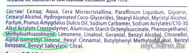 К раздражающим и аллергенным также относятся такие ингредиенты как Benzyl Salicylate, Methylisothiazolinone.