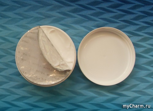 Открыв крышечку банки можно увидеть, что косметика защищена специальной фольгой. Я приподняла только ее край, полностью ее не удаляю. Это позволяет сохранить все полезные вещества крема на длительный срок.